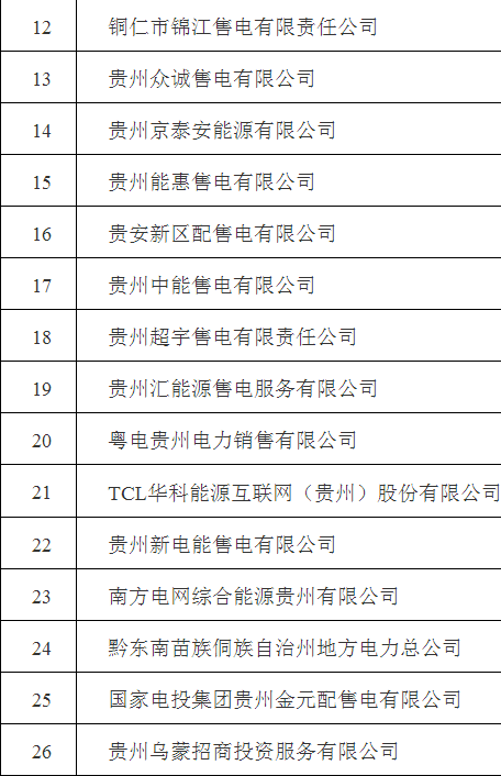 關(guān)于貴州省61家售電公司完成備案的公告