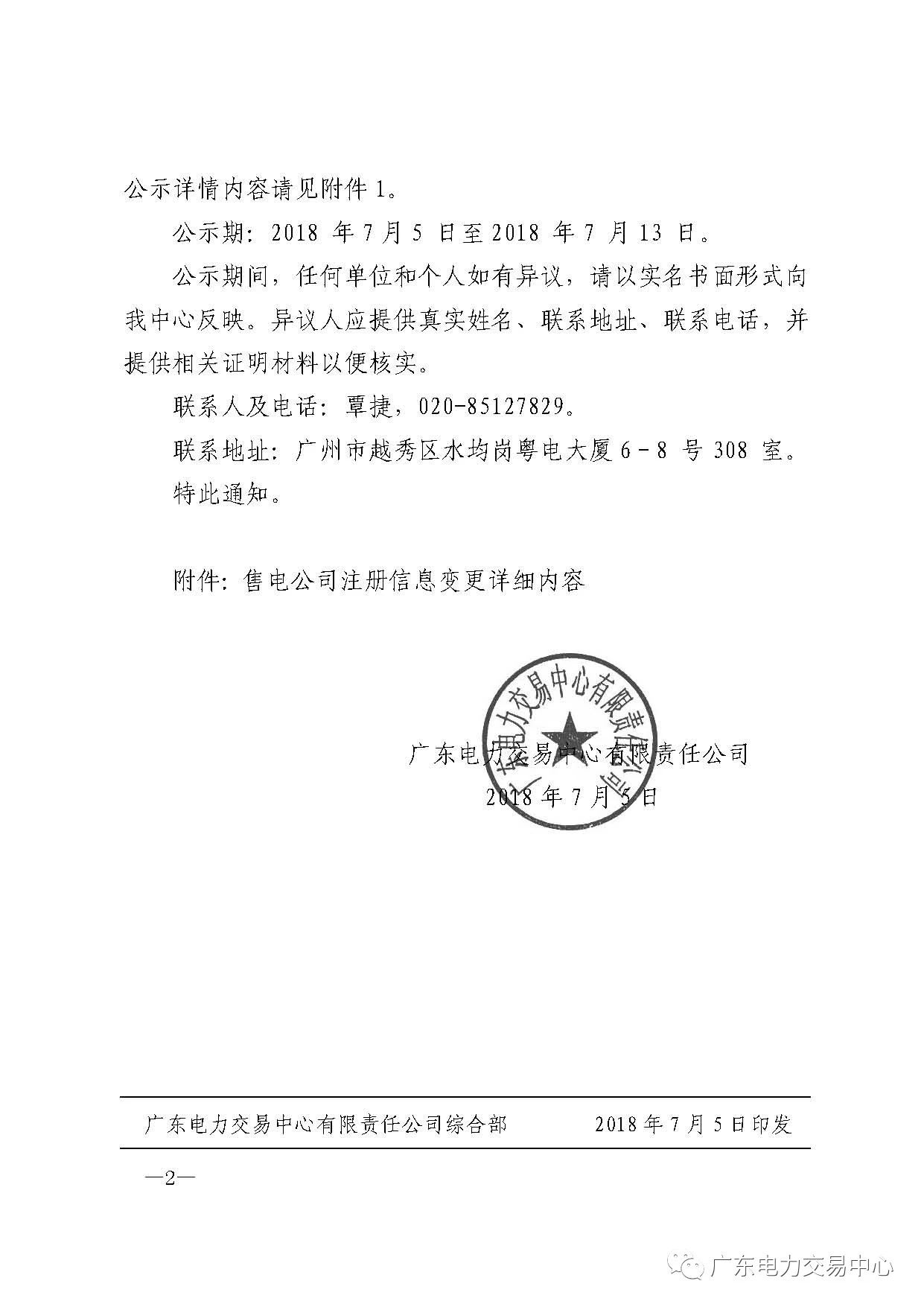 為做好售電公司的注冊(cè)信息變更等相關(guān)工作,廣東電力交易中心現(xiàn)對(duì)2018年6月申請(qǐng)變更的兩家售電公司變更注冊(cè)信息進(jìn)行公示,公示正文如下: