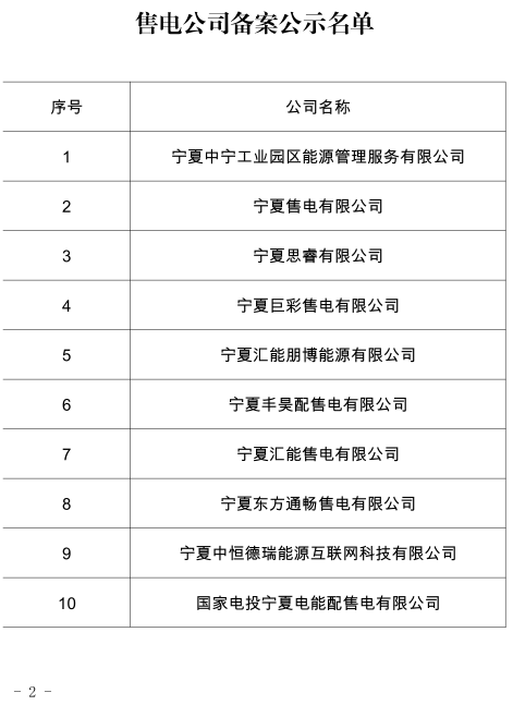 寧夏自治區(qū)經(jīng)信委日前發(fā)布了關(guān)于售電公司備案的公示,對(duì)寧夏電力交易中心報(bào)送的46家售電公司進(jìn)行了審核確認(rèn),對(duì)符合備案條件的10家售電公司予以公示。詳情如下: