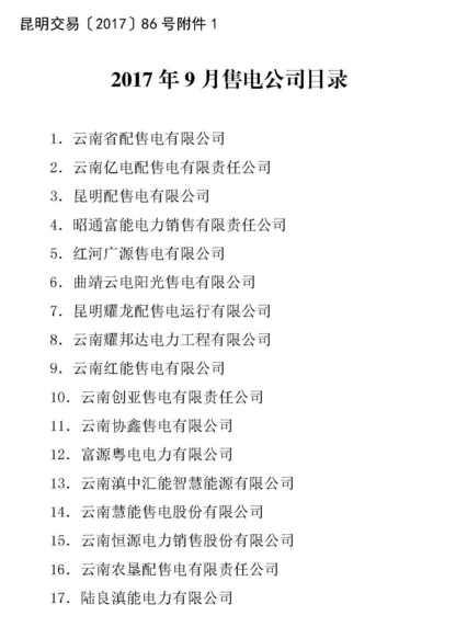 云南9月售電企業(yè)目錄:售電公司增至56家