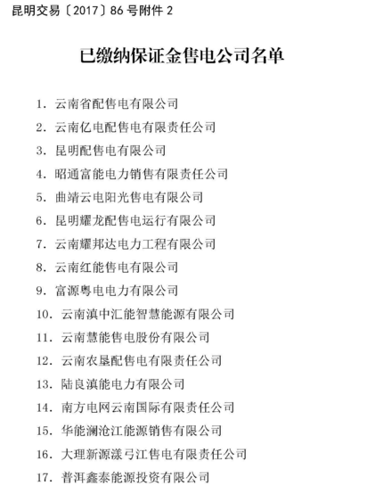昆明電力交易中心日前發(fā)布了2017年9月售電企業(yè)目錄的通知,至此,云南售電公司達(dá)56家,已繳納保證金的售電公司有26家。詳情如下: