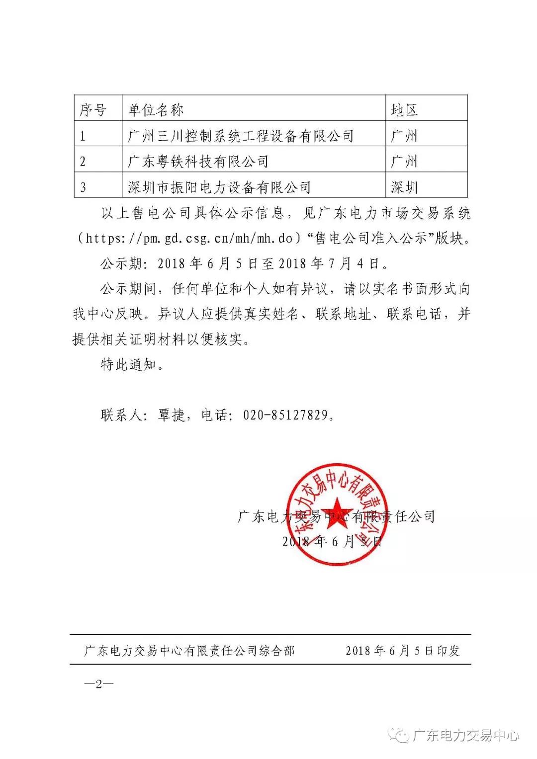為做好售電公司的準(zhǔn)入審核等相關(guān)工作,廣東電力交易中心現(xiàn)對(duì)2018年05月注冊(cè)申請(qǐng)的3家售電公司進(jìn)行公示,公示正文如下: