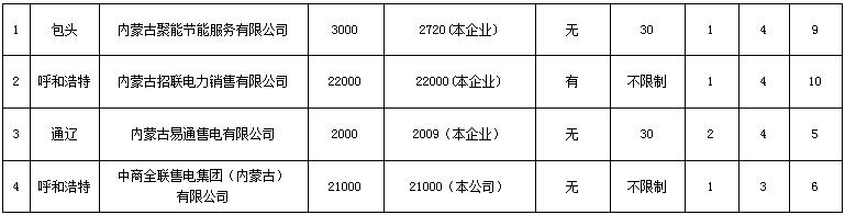 內(nèi)蒙古公示擬參與電力市場的19家售電公司和信息變更的1家售電公司