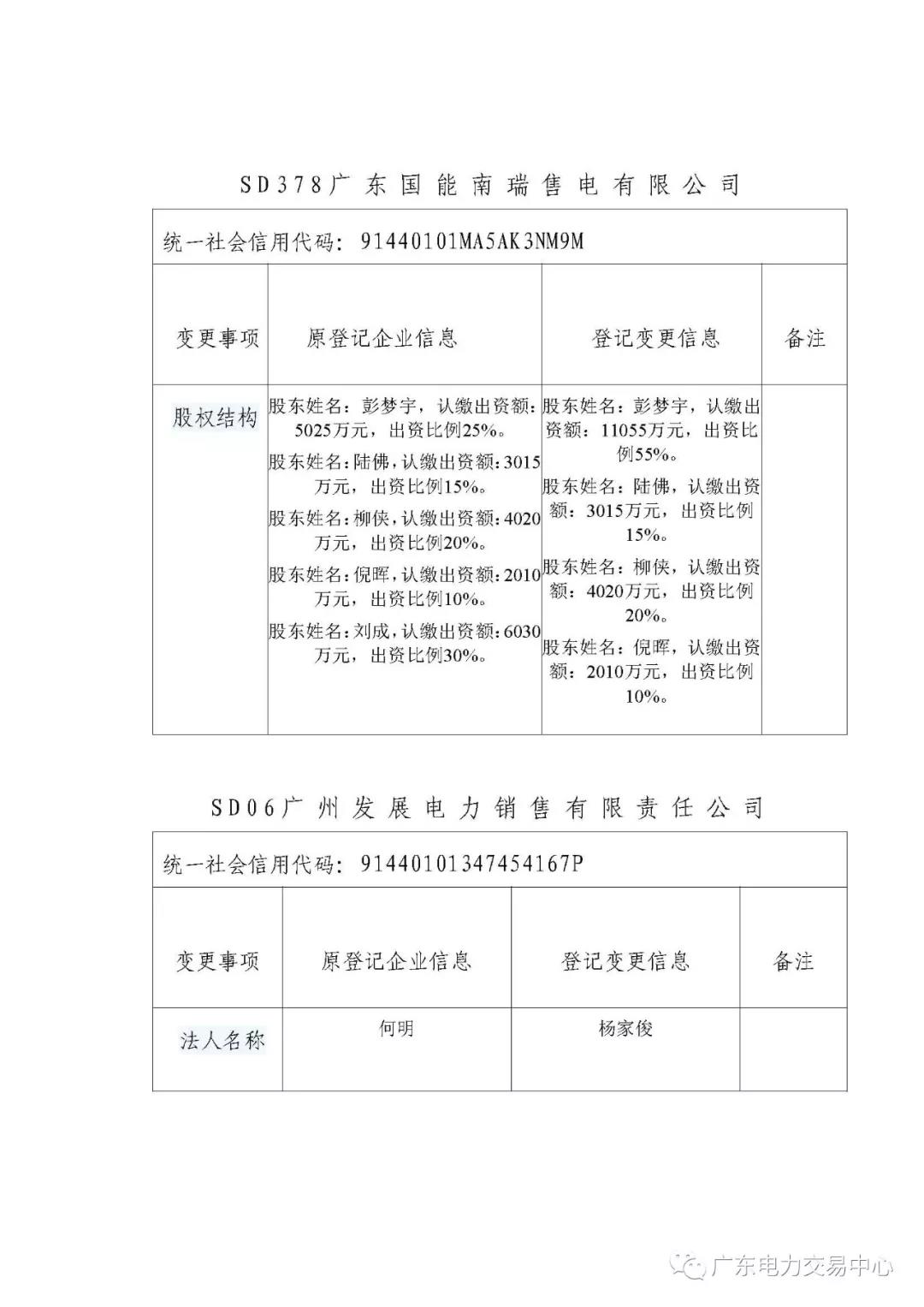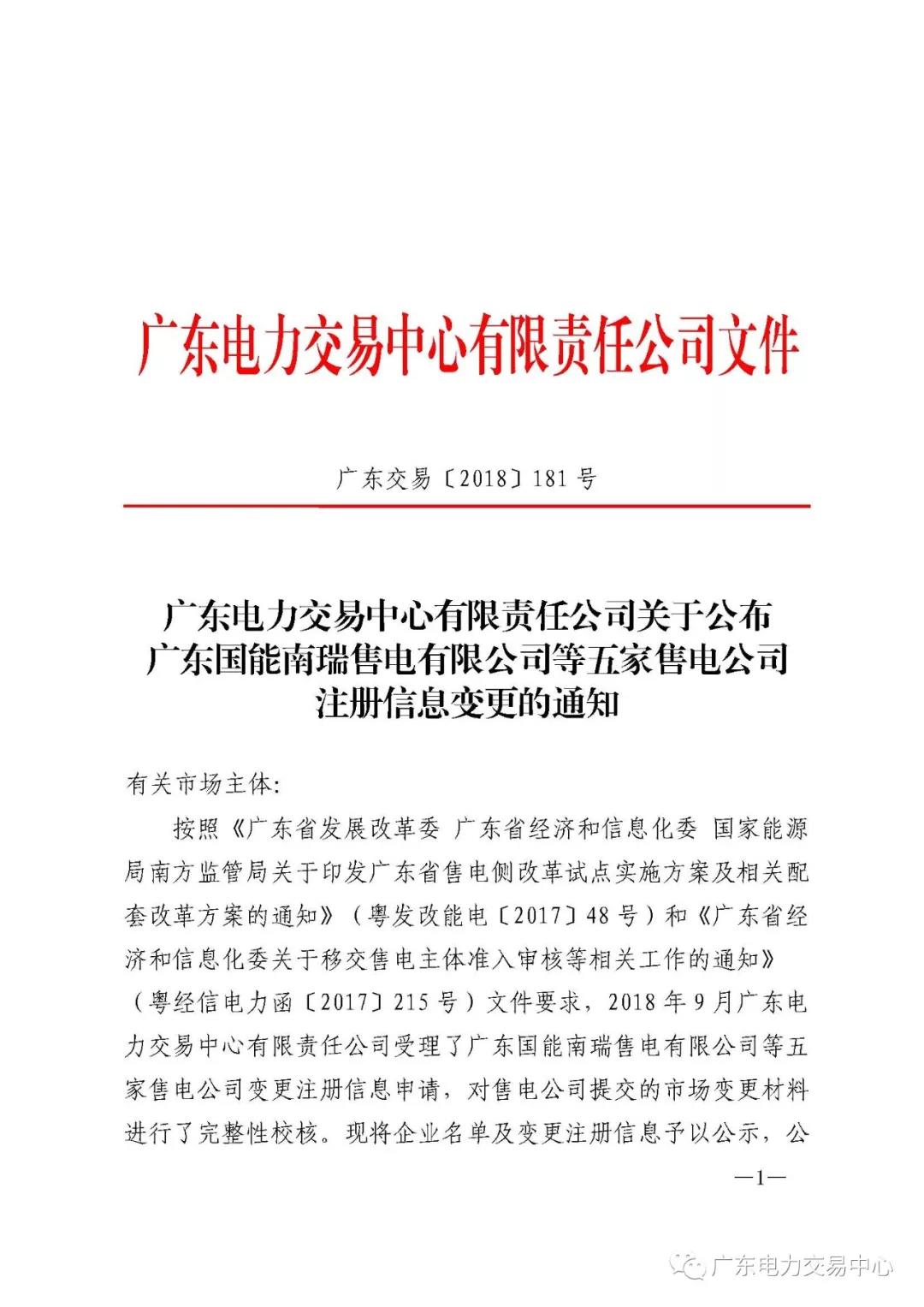 通知 | 關(guān)于公布廣東國(guó)能南瑞售電有限公司等五家售電公司注冊(cè)信息變更的通知