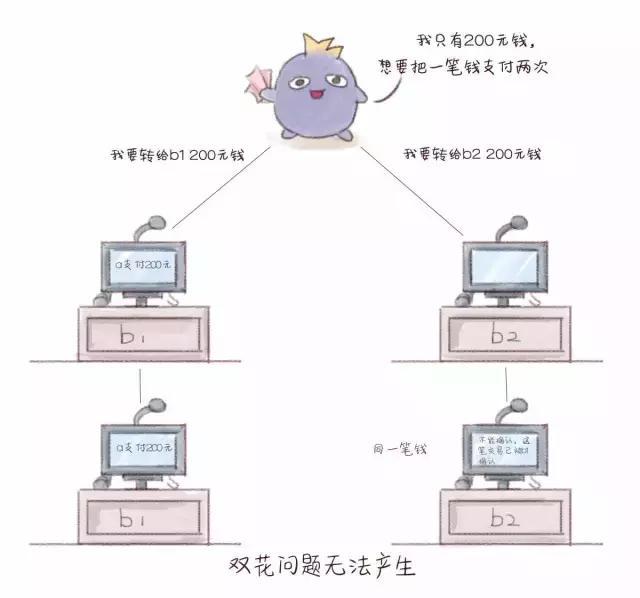 如果我同時(shí)向B和C都喊了一句,我給你一個(gè)巴拉拉能量,怎么辦呢?巴拉拉能量只有一個(gè),如何保證一個(gè)巴拉拉能量在實(shí)際的交易中只被支付了一次呢?