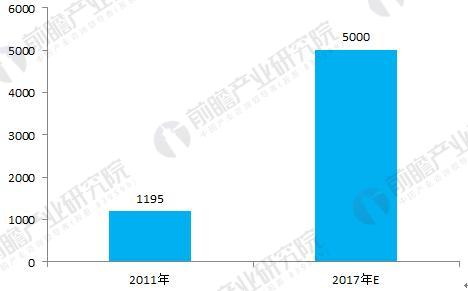 圖表4:2011-2017年我國智慧城市投資規(guī)模變化情況(單位:億元)
