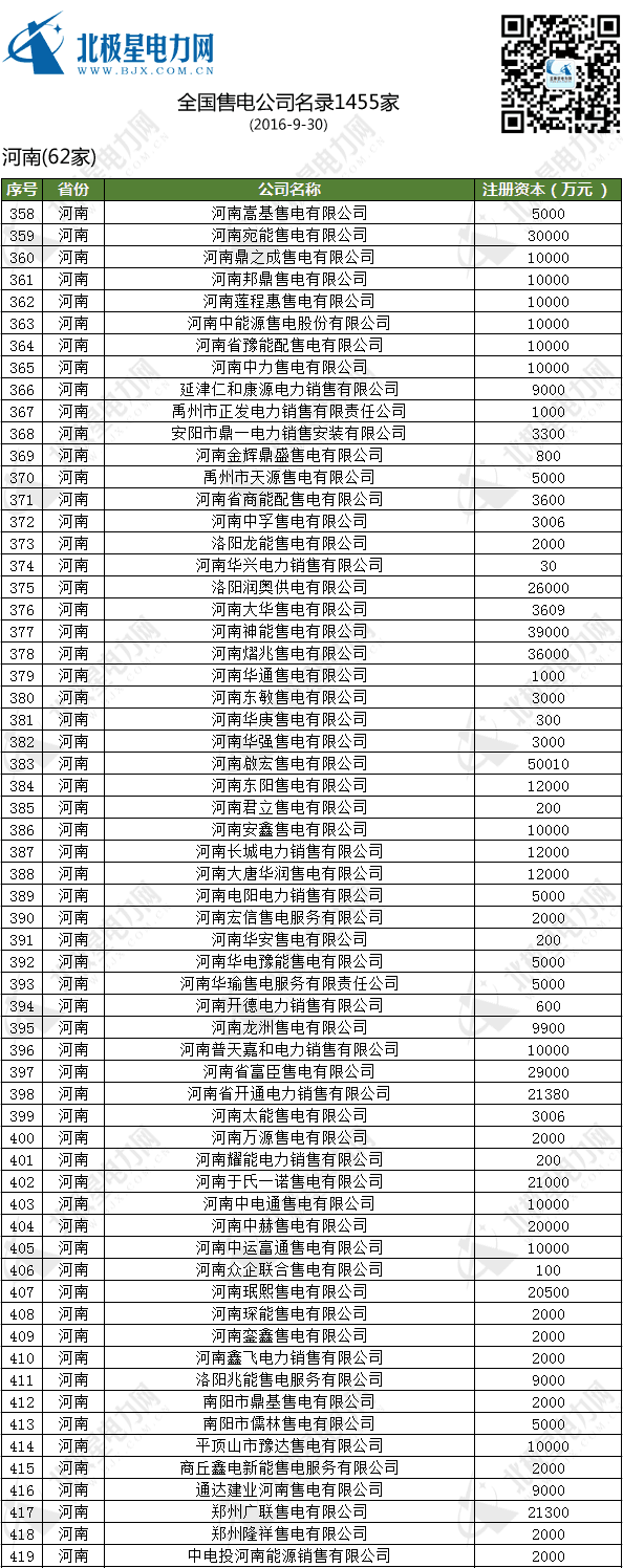 全國售電公司名錄(1455家)