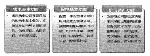售電云平臺是專門為售電公司、大用戶等用戶側(cè)市場主體提供的大數(shù)據(jù)購售電精益化管理體系,平臺支撐的業(yè)務(wù)覆蓋發(fā)電業(yè)務(wù)、購售電業(yè)務(wù)、配網(wǎng)運營、客戶服務(wù)、創(chuàng)新增值業(yè)務(wù)等核心業(yè)務(wù),同時根據(jù)三類售電公司的業(yè)務(wù)范圍和業(yè)務(wù)需求.售電技術(shù)支持系統(tǒng)的功能包括三部分:售電基本功能;配電基本功能;擴(kuò)展選配功能,匹配不同售電公司業(yè)務(wù)需求。