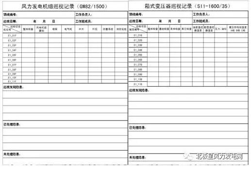 風(fēng)力發(fā)電機組巡檢記錄卡: