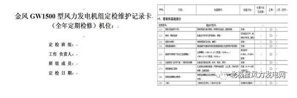 風(fēng)力發(fā)電機組定檢記錄卡: