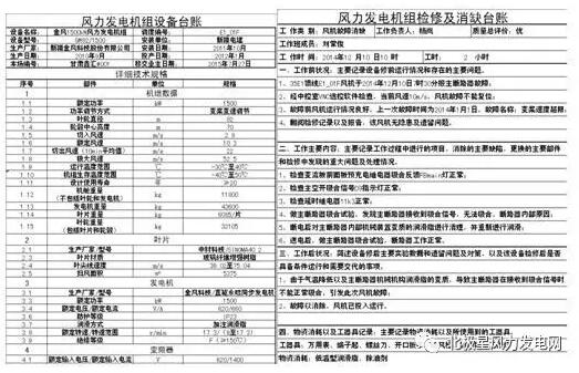 風(fēng)力發(fā)電機組設(shè)備技術(shù)臺賬: