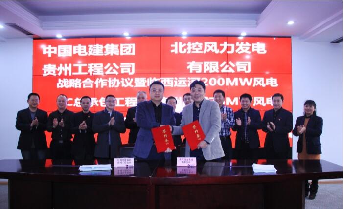 12月26日下午,中國(guó)電建貴州工程公司市場(chǎng)開(kāi)發(fā)再傳捷報(bào),成功與北控風(fēng)力發(fā)電有限公司簽訂戰(zhàn)略合作協(xié)議暨臨西運(yùn)河200兆瓦風(fēng)電、德州陵城76兆