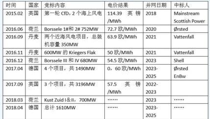 三、 歐洲海上風(fēng)電市場(chǎng)競(jìng)標(biāo)情況