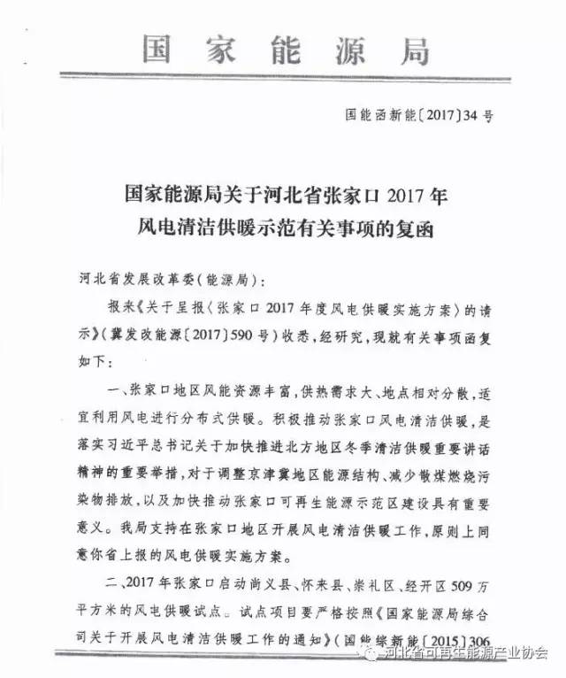 國(guó)家能源局批準(zhǔn)河北省開展張家口2017年風(fēng)電清潔供暖示范