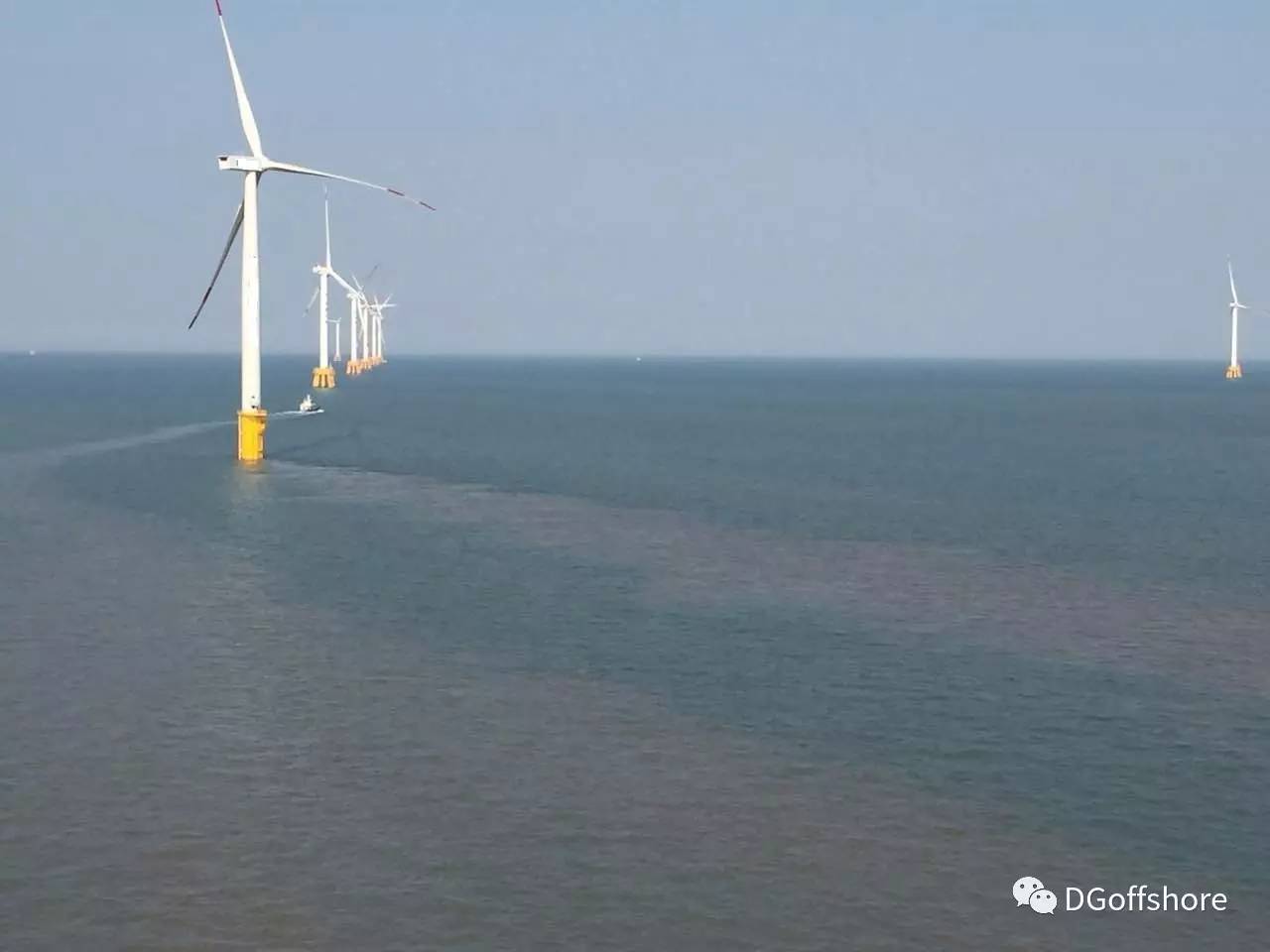 強(qiáng)大的潮流使得風(fēng)機(jī)的樁承受強(qiáng)烈的沖刷影響,你看那幾道灰色的泥流