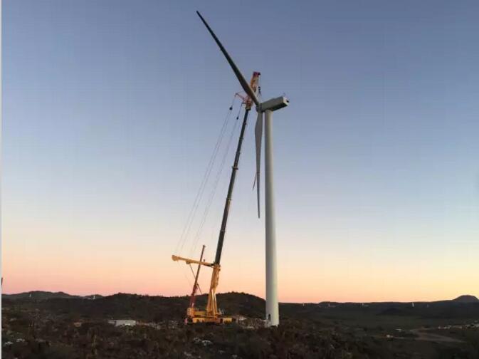 2017年8月,龍?jiān)茨戏堑掳⒍陲L(fēng)電項(xiàng)目完成全部96臺(tái)風(fēng)電機(jī)組吊裝;一期、二期項(xiàng)目首臺(tái)風(fēng)電機(jī)組均順利完成調(diào)試。