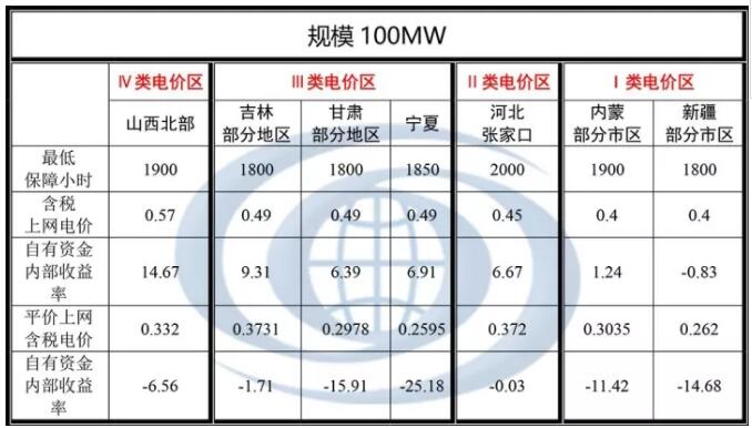 由上表測算可以看出,2018年電價調(diào)整后,部分風(fēng)電場已經(jīng)很難滿足自有資金內(nèi)部收益10%的要求,近幾年內(nèi)更無法滿足平價上網(wǎng)條件。若要實現(xiàn)平價上網(wǎng),以下對一些投資少、資源好的地區(qū)在不限電情況下進行平價上網(wǎng)分析,包括吉林、甘肅、張家口、內(nèi)蒙、新疆。