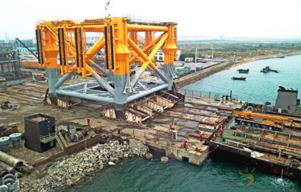 河北唐山樂(lè)亭菩提島海上風(fēng)電項(xiàng)目導(dǎo)管架順利裝船