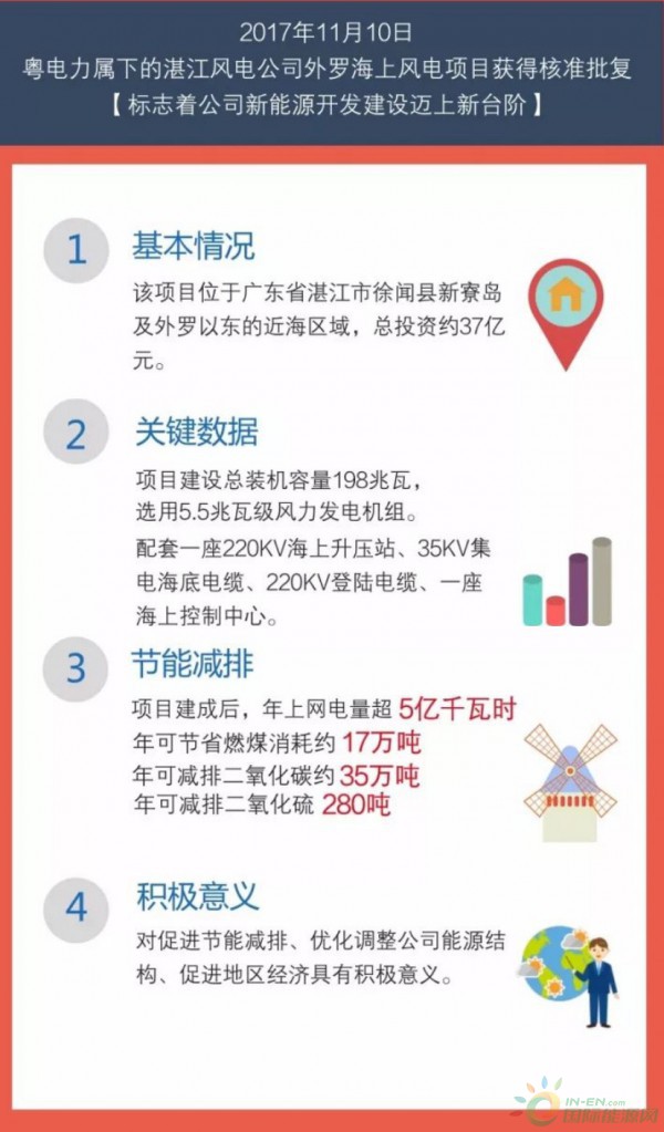 2017年11月10日,粵電力樹下的湛江風(fēng)電公司外羅海上風(fēng)電項目獲得核準(zhǔn),具體如下: