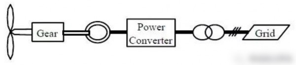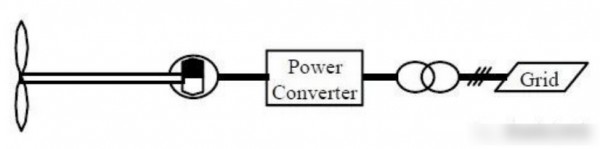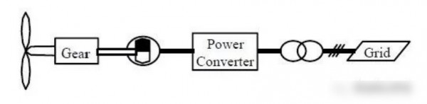 類型C:葉輪主軸直接與發(fā)電機(jī)轉(zhuǎn)子連接、無齒輪箱,發(fā)電機(jī)采用永磁同步發(fā)電機(jī)、多極對轉(zhuǎn)子,并網(wǎng)側(cè)設(shè)全功率變頻整流逆變裝置。
