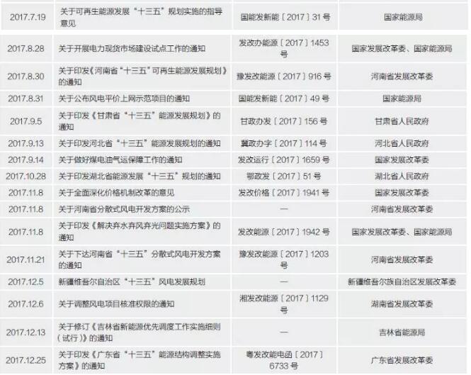 2017 年,我國(guó)各級(jí)政府繼續(xù)在政策層面大力推動(dòng)風(fēng)電發(fā)展,從中央到地方陸續(xù)出臺(tái)多項(xiàng)文件為破解行業(yè)難題、提升發(fā)展質(zhì)量做支撐。是年,電力市