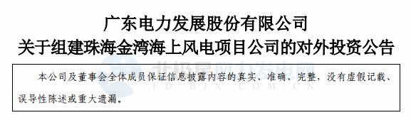 粵電力A近日發(fā)布公告稱,為加快推進(jìn)珠海金灣海上風(fēng)電項(xiàng)目的后續(xù)工作,董事會(huì)同意由其全資子公司廣東省風(fēng)力發(fā)電有限公司全資組建廣東粵電珠