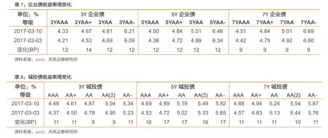 各類(lèi)信用債收益率整體上行。具體來(lái)看,中短期票據(jù)收益率曲線1年期各等級(jí)收益率上行5-15BP,3年期各等級(jí)收益率上行12-14BP,5年期各等級(jí)收益率上行12-12BP;企業(yè)債收益率曲線3年期各等級(jí)收益率上行12-14BP,5年期各等級(jí)收益率上行12-12BP,7年期各等級(jí)收益率上行9-9BP;城投債收益率曲線3年期各等級(jí)收益率上行9-11BP,5年期各等級(jí)收益率上行16-17BP,7年期各等級(jí)收益率上行10-11BP。