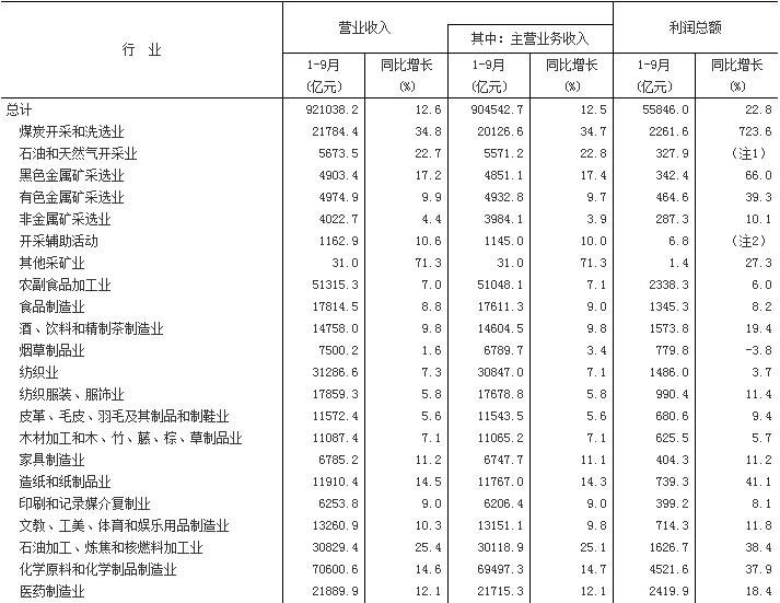 10月27日,國家統(tǒng)計局發(fā)布了2017年1-9月份全國規(guī)模以上工業(yè)企業(yè)利潤統(tǒng)計分析。1-9月份,全國規(guī)模以上工業(yè)企業(yè)實現(xiàn)利潤總額55846億元,同比增長22 8%,增速比1-8月份加快1 2個百分點。其中,電力、熱力生產(chǎn)和供應(yīng)