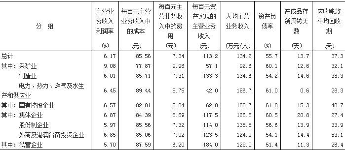 表1 2017年1-9月份規(guī)模以上工業(yè)企業(yè)主要財務(wù)指標