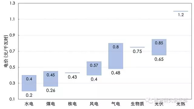圖4 各類發(fā)電類型上網(wǎng)電價(jià)水平比較