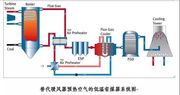 為提高煤炭利用效率,提高發(fā)電企業(yè)的經(jīng)濟效益,降低煤炭用量的增長速度,減緩二氧化塔、氮氧化物排放量的增長,低溫省煤器應用得到廣泛關注。主要利用煙氣中的熱量加熱凝結水、釆暖水,或者直接加熱預熱器進風。
