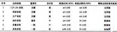 從表2可以看出,不同的業(yè)務(wù)系統(tǒng)依據(jù)它們的重要性和實(shí)時(shí)性的不同,需要達(dá)到的容災(zāi)級(jí)別也是不同的,OA系統(tǒng)、科研系統(tǒng)、生產(chǎn)系統(tǒng)是關(guān)系企業(yè)業(yè)務(wù)開展的關(guān)鍵業(yè)務(wù)系統(tǒng),擬設(shè)計(jì)達(dá)到應(yīng)用級(jí)別的容災(zāi),而郵件系統(tǒng)、質(zhì)量系統(tǒng)、和其它系統(tǒng)擬建設(shè)達(dá)到數(shù)據(jù)級(jí)容災(zāi)的要求。