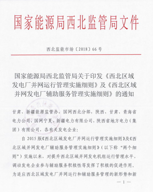新版|西北區(qū)域發(fā)電廠并網(wǎng)運(yùn)行管理實(shí)施細(xì)則、并網(wǎng)發(fā)電廠輔助服務(wù)實(shí)施細(xì)則發(fā)布