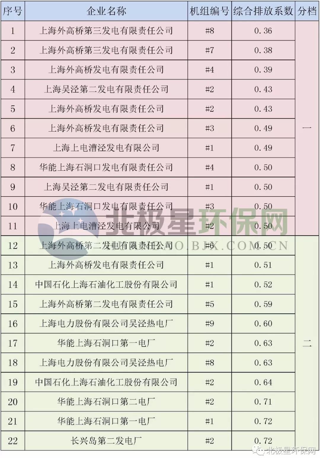 上海市燃煤發(fā)電機(jī)組環(huán)保排序結(jié)果公布【附名單】