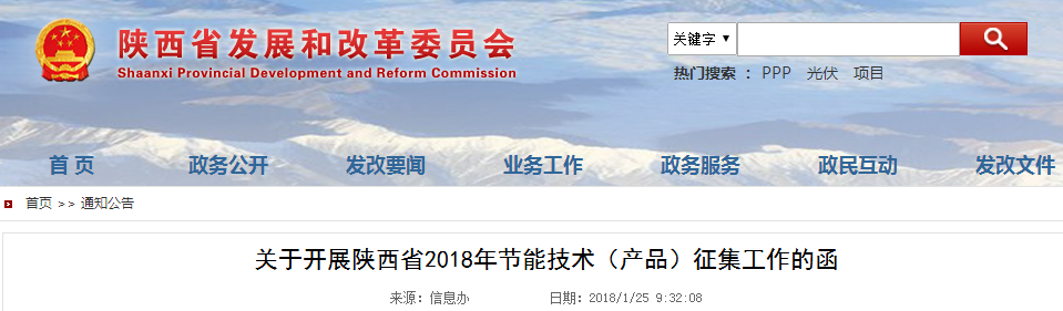 陜西省2018年節(jié)能技術(產(chǎn)品)征集工作