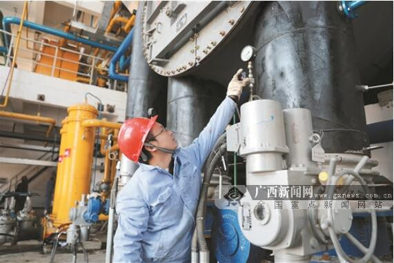合浦農(nóng)林廢棄物熱電聯(lián)產(chǎn)項目成功并網(wǎng)發(fā)電。圖為工程技術人員正在操作機器設備