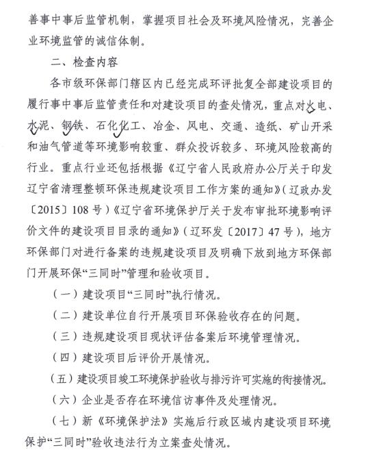 遼寧:關(guān)于開(kāi)展火電、水泥等重點(diǎn)行業(yè)建設(shè)項(xiàng)目環(huán)保事中事后監(jiān)管專(zhuān)項(xiàng)檢查的通知