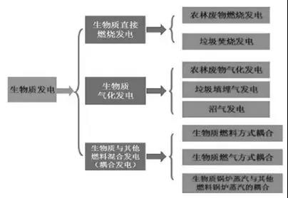 生物質(zhì)發(fā)電方式主要可分為直接燃燒發(fā)電、氣化發(fā)電和與耦合發(fā)電三種方式。直接燃燒發(fā)電分為農(nóng)林廢棄物直接燃燒發(fā)電、垃圾焚燒發(fā)電等;氣化發(fā)電可分為農(nóng)林廢棄物氣化發(fā)電、垃圾填埋氣發(fā)電、沼氣發(fā)電等;耦合發(fā)電是生物質(zhì)與其他燃料結(jié)合的發(fā)電技術(shù)。