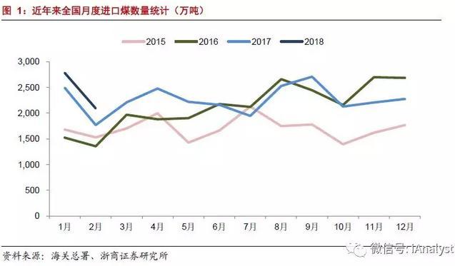 2018年1-2月全國規(guī)模以上煤炭企業(yè)原煤產(chǎn)量5.16億噸,同比增長5.7%,累計(jì)進(jìn)口煤炭4871.3萬噸,同比增長14.4%,進(jìn)口煤中動(dòng)力煤1380.13萬噸,同比增長18.82%。我們認(rèn)為,煤炭進(jìn)口量與產(chǎn)量雙升的局面,在一定程度上印證了我們關(guān)于煤炭需求預(yù)期回升對于煤炭供給釋放的傳導(dǎo)機(jī)制的判斷。此外我們認(rèn)為進(jìn)口量回升快于國內(nèi)產(chǎn)量釋放,如后續(xù)規(guī)劃優(yōu)質(zhì)產(chǎn)能逐步建成,煤炭供給環(huán)境有望在全年維持持續(xù)改善格局。