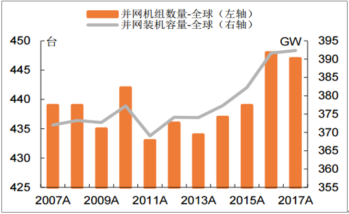 全球核電并網(wǎng)機(jī)組數(shù)量及裝機(jī)容量