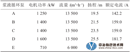 根據(jù)《山西省人民政府辦公廳關于推進全省燃煤發(fā)電機組超低排放的實施意見》(晉政辦發(fā)[2014]62號、《山西省現(xiàn)役燃煤發(fā)電機組超低排放改造提速3年推進計劃》等要求,全省現(xiàn)役單機300 MW及以上燃煤發(fā)電機組2017年底前完成超低排放改造任務。在基準氧含量6%條件下,SO2排放濃度低于35mg/m3。由于該電廠原有脫硫裝置無法滿足新的排放要求,因此進行了超低排放改造。經過改造后,每臺機組脫硫系統(tǒng)配置4臺流量為13500m3/h的漿液循環(huán)泵加1臺設計流量為6000m3/h的輔助漿液循環(huán)泵,吸收塔內設置4層噴淋層加2層輔助噴淋層。各漿液循環(huán)泵的設計參數(shù)如表1所示。