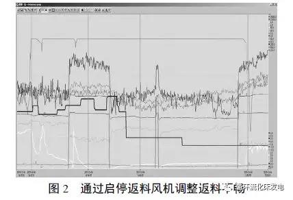 雖說(shuō)預(yù)防為主,但實(shí)際運(yùn)行中還是會(huì)發(fā)生。這樣可以從事故輕重來(lái)分步調(diào)節(jié)。當(dāng)單側(cè)返料器發(fā)生返料不暢或脈動(dòng),而床溫沒(méi)有升高太多時(shí),可以緩慢適當(dāng)減少兩側(cè)返料器的流化風(fēng)量增加故障側(cè)的返料風(fēng)量風(fēng)壓,加強(qiáng)排渣保證較低的床壓,監(jiān)視各參數(shù)的的變化趨勢(shì),一般經(jīng)過(guò)15min左右能恢復(fù)正常。當(dāng)調(diào)整無(wú)效或者單側(cè)返料已不返料,床溫突升,最直接有效的措施就是啟動(dòng)備用返料風(fēng)機(jī)或者打開(kāi)事故放灰管。但啟動(dòng)返料風(fēng)機(jī)同時(shí)也要打開(kāi)返料風(fēng)壓調(diào)整門(mén),緩慢提高返料風(fēng)壓風(fēng)量;打開(kāi)事故放灰管時(shí)要少量多次的放灰,避免床溫突升突降,爐膛壓力波動(dòng)跳閘。以下兩張截圖是實(shí)際采取以上措施的效果趨勢(shì)。