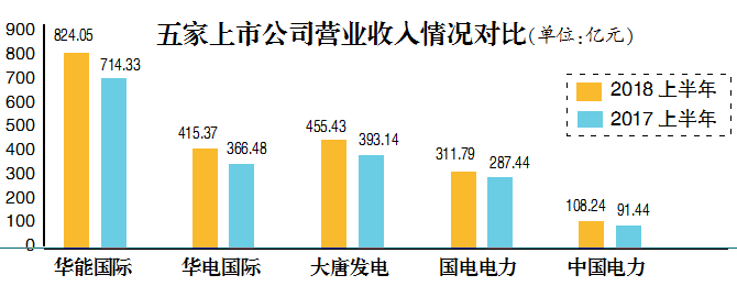 截至8月底,華能國(guó)際、華電國(guó)際、大唐發(fā)電、國(guó)電電力、中國(guó)電力均發(fā)布了上半年業(yè)績(jī)報(bào)告。報(bào)告顯示,上半年煤價(jià)仍處高位,甚至高于上年同期水平,但五家上市公司營(yíng)業(yè)收入、凈利潤(rùn)均高于上年同期,煤電業(yè)務(wù)經(jīng)營(yíng)情況也較上年同期有所好轉(zhuǎn)。