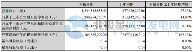 天順風(fēng)能近日公布半年業(yè)績。據(jù)報告,天順風(fēng)能上半年營業(yè)收入達(dá)12.45億元,同比增長27.33%;凈盈利2.41億元,同比增長13%。以下為具體情況:
