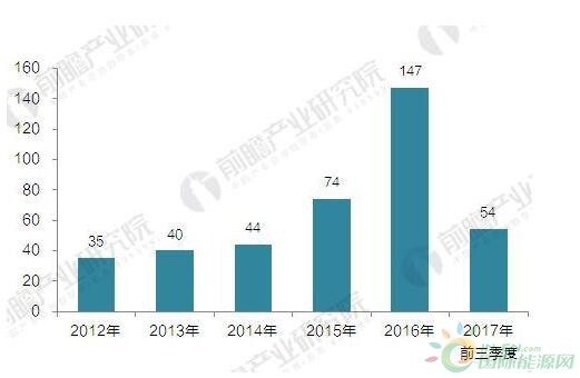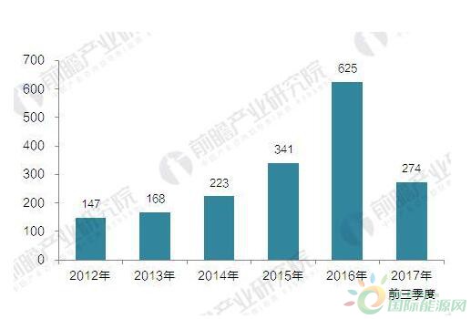 隨著垃圾發(fā)電項(xiàng)目的密集上陣,行業(yè)投資規(guī)模不斷擴(kuò)大,僅以上面統(tǒng)計(jì)的垃圾焚燒發(fā)電項(xiàng)目,2012年總投資額在160億元左右,2016年垃圾發(fā)電項(xiàng)目投資額超過600億元,增長速度較快。2017年前三季度垃圾發(fā)電項(xiàng)目投資額約為274億元。