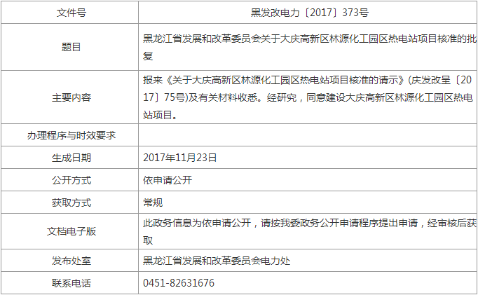 核準丨黑龍江省發(fā)改委核準2個火電項目