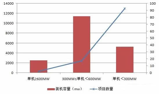 從新核準(zhǔn)項(xiàng)目單臺(tái)機(jī)組發(fā)電容量來看,單機(jī)容量超過600兆瓦的項(xiàng)目只有2個(gè),分別位于山東和內(nèi)蒙;單機(jī)容量小于300兆瓦的項(xiàng)目有93個(gè),數(shù)量最多。