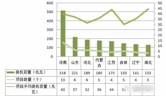 新核準(zhǔn)生物質(zhì)熱電聯(lián)產(chǎn)項(xiàng)目54個(gè),總裝機(jī)規(guī)模194.8萬千瓦。項(xiàng)目最多和裝機(jī)規(guī)模最大的地區(qū)是河南省。生物質(zhì)熱電聯(lián)產(chǎn)以小型裝機(jī)為主,平均裝機(jī)規(guī)模只有36兆瓦。裝機(jī)容量在100兆瓦以上的地區(qū)如下: