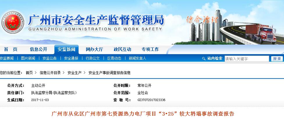 近日,廣州市安全生產(chǎn)監(jiān)督管理局公布《廣州市從化區(qū)廣州市第七資源熱力電廠項(xiàng)目“3•25”較大坍塌事故調(diào)查報(bào)告》,全文如下: