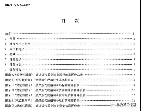 中華人民共和國(guó)國(guó)家質(zhì)量監(jiān)督檢驗(yàn)檢疫總局、中國(guó)國(guó)家標(biāo)準(zhǔn)化管理委員會(huì)發(fā)布《燃煤煙氣脫硝裝備運(yùn)行效果評(píng)價(jià)技術(shù)要求 GB/T 34340-2017 》。根據(jù)標(biāo)準(zhǔn)要求,燃煤煙氣脫硝裝置運(yùn)行效果評(píng)價(jià)總分為100分,其中,環(huán)保性能指標(biāo)占50分,資源能源消耗指標(biāo)占10分、技術(shù)經(jīng)濟(jì)性能指標(biāo)占20分,運(yùn)行管理指標(biāo)占10分,設(shè)備狀況指標(biāo)占10分。詳見(jiàn)附錄A。環(huán)保性能評(píng)價(jià)指標(biāo)包括NOx排放濃度、脫硝效率、氨逃逸率、SO2/SO3轉(zhuǎn)化率以及氨泄漏、廢水、固廢、噪聲等,詳見(jiàn)附錄C。資源能源消耗指標(biāo)有催化劑消耗、還原劑消耗、水耗、能耗,詳見(jiàn)附錄D。附錄中對(duì)各指標(biāo)評(píng)價(jià)方法給出詳細(xì)規(guī)定。